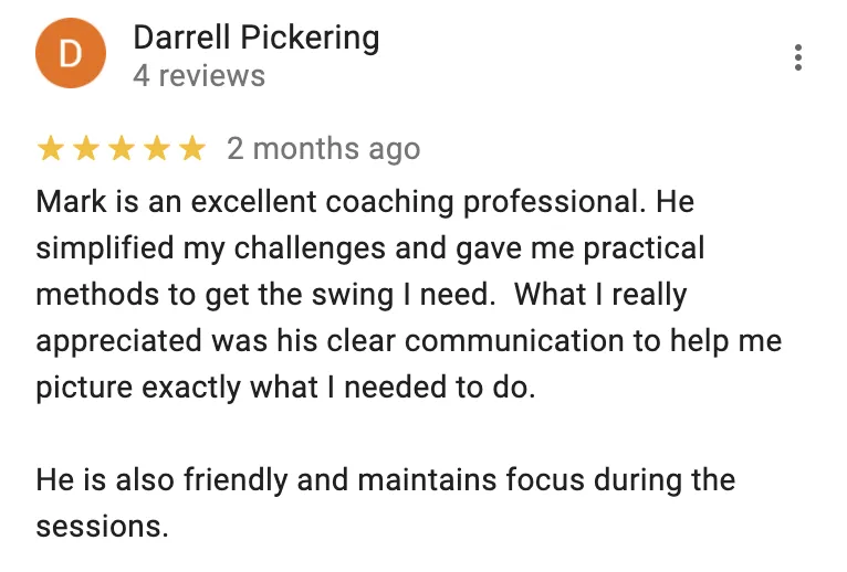 The videos give me a great understanding of where your game is and the direction we will be working towards. As part of the video analysis I will break down your swing, identify what needs to change and create a plan for the lesson. I will then do a detailed video voice over analysis of your swing videos explaining the cause and effect of your swing faults and detailing why and how it will impact your ball flight.