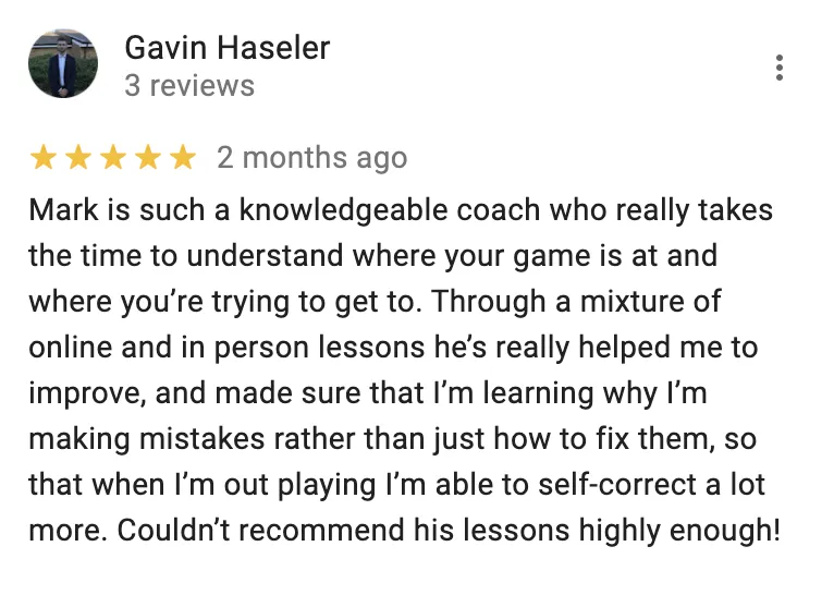 Finally every lesson comes with a personalised video in which I demonstrate and detail everything covered in the analysis. In this I’ll explain how and why we are making these changes providing you with a step by step plan to help you improve your game and get results.